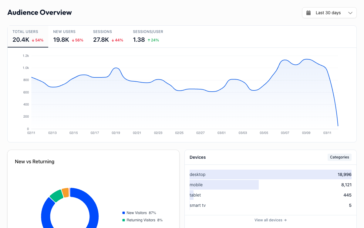 - "Are my email subscribers actually engaged?" Look at the returning users trend after sending a campaign.