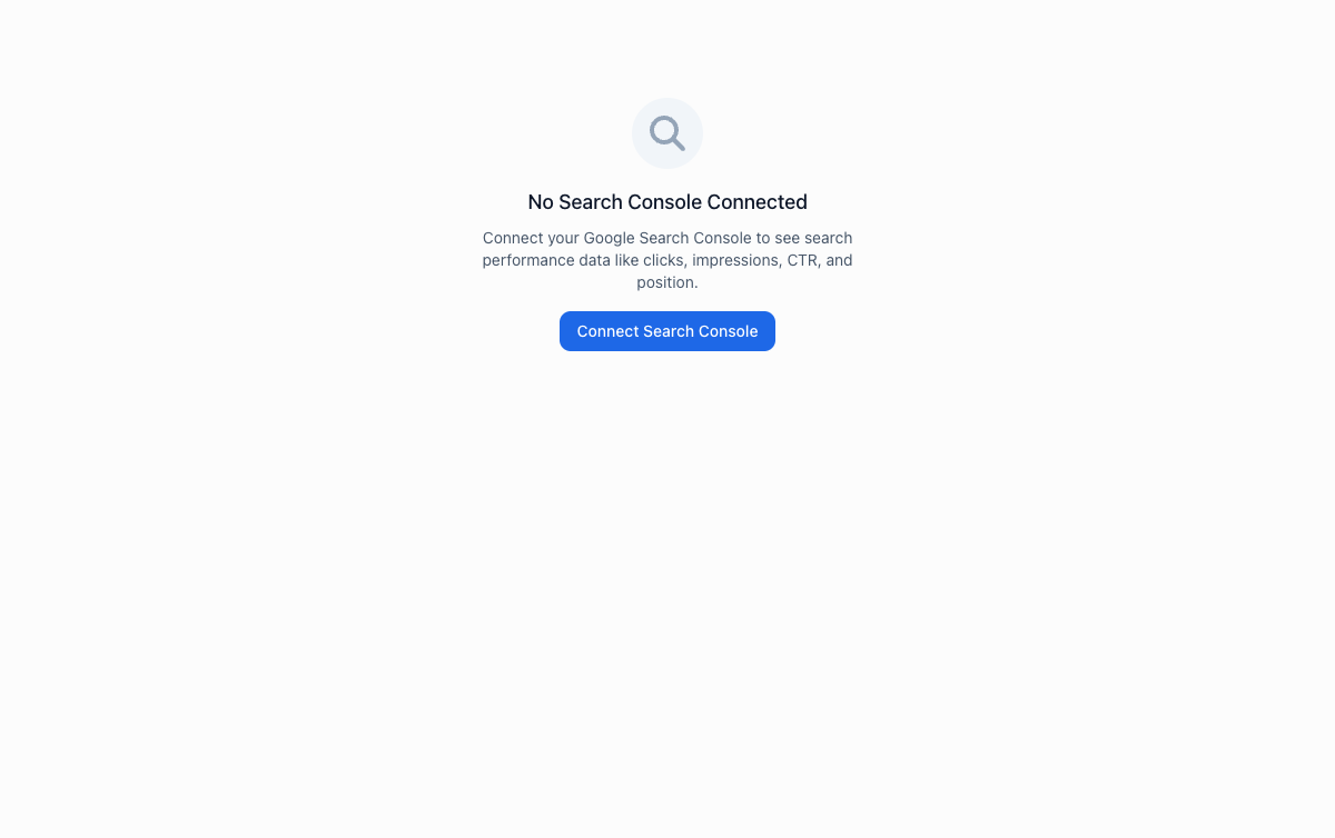 Once connected, Search Console data will appear automatically on this dashboard.